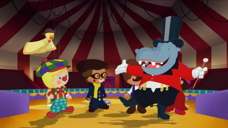 Zoé, Hamid und Yasemin haben viel Spaß bei ihrem Spiel. Da kommt Finn mit einer Tüte an, in der er Steine zum Bemalen, Pinsel und Farben hat. Leider ist alles durcheinandergeraten und farbverschmiert. Zum Trost meldet sich der Zauberschrank und nimmt die Kinder mit in eine Zirkusmanege! Yasemin ist Trapezkünstlerin, Finn ist der Kraftprotz, Zoé, Hamid und QuackQuack sind Clowns! Da erscheint auch schon der Zirkusdirektor, der besorgt ist, weil seine Künstler für die große Vorstellung noch nicht eingetroffen sind. Ob Zoé und ihre Freunde es schaffen, das Publikum mit einer tortenschmissigen Clownnummer zu begeistern?