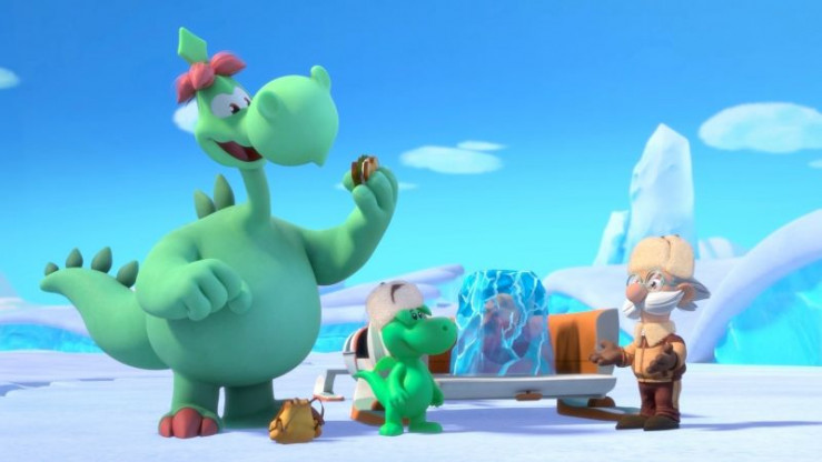 Grisu und Fumé wollen Professor Smeraldo helfen, ein Dragonosaurus-Ei am Nordpol zu bergen. Aber das prähistorische Ei liegt gefährlich nahe an einer Gletscherspalte! Eine hungrige Möwe macht es Grisu noch schwerer - sie scheint ebenfalls ein großes Interesse an dem Ei zu haben. Beim Versuch, die Möwe zu verscheuchen, rutscht das Ei noch näher an die Gletscherspalte.