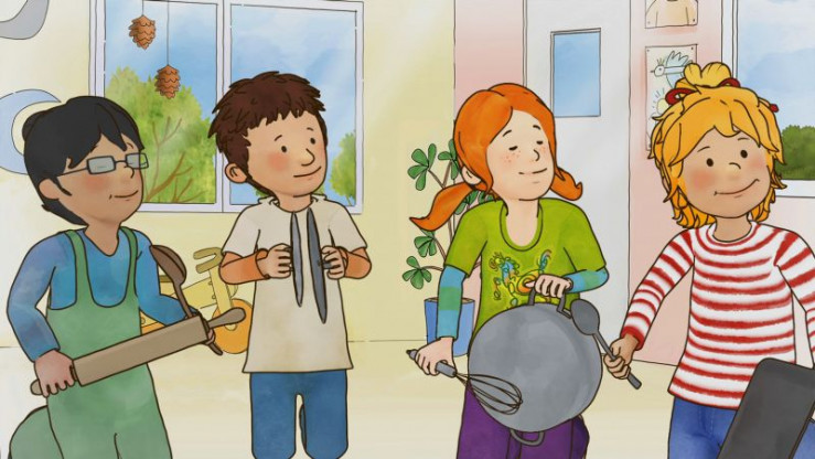 Conni stibitzt die Küchenutensilien für ihr erstes Hauskonzert, doch Mama und Papa sind zunächst von Connis Konzert mit Topfdeckeln wenig begeistert. Dabei lernt Conni doch gerade im Kindergarten, dass man mit fast allen Dingen Musik machen kann. Man muss nur eine richtig gute Melodie erfinden! In ihrer Kindergartengruppe erfährt Conni, was ein Takt ist und wie Noten aussehen. Denn die Gruppe plant ein Musikkonzert für die Eltern. Conni wählt ein Tamburin, zeichnet ihre ersten Noten und übt unermüdlich für den Auftritt. Da staunen Connis Eltern und Jakob nicht schlecht, als die Kindergartengruppe ihr selbst einstudiertes Lied vorführt.