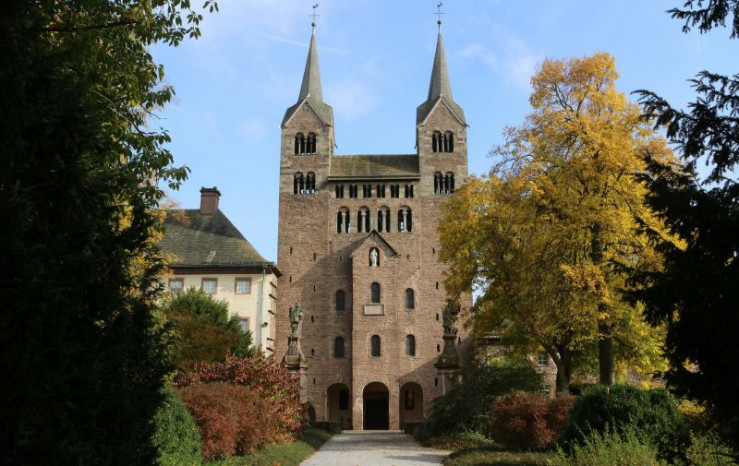 Von der ursprünglichen Klosteranlage hat nur das Karolingische Westwerk die Wirren der Zeit überstanden. Zum Glück, denn wir verdanken dem vorgelagerten Zentralbau der ehemaligen Klosterkirche tiefe Einblicke in die damalige Architektur: Neuartig, modern und prägend war die karolingische Bauweise aus Bruchsteinmauerwerk. Sie vereint auf hohem Niveau das Innovative mit antiken Vorbildern. Dies zeigt sich im Innern des Westwerks mit seiner original erhaltenen gewölbten Eingangshalle mit Säulen und Pfeilern. Dort empfängt der Corveyer Abt den Kaiser bei den Hoftagen. Von Emporen umgeben ist der Johannis-Chor im Obergeschoss, ein Zeugnis karolingischer Baukunst.