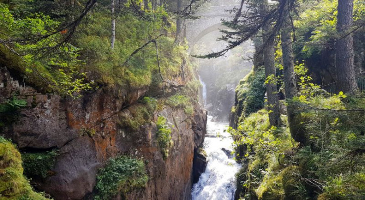 Die Pont d'Espagne ist ein Wahrzeichen der Pyrenäen, die die natürliche Grenze zwischen Spanien und Frankreich bilden.