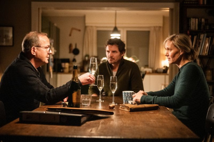 Gerhard Zöllner (Uwe Preuss, l.) erzählt, dass das lang geplante Ärztehaus genehmigt ist, doch Claudia (Anna Schudt, r.) und Peter (Felix Klare, M.) ist nicht nach Feiern zumute.
