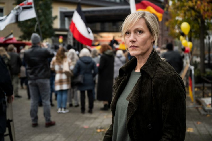 Claudia Voss (Anna Schudt) realisiert, dass sie nichts gegen die rechte Demonstration in ihrer Stadt ausrichten kann.