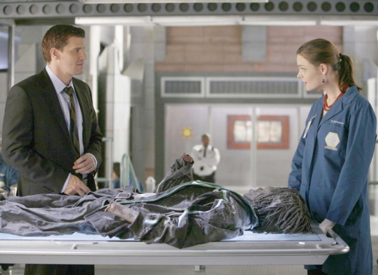 Dr. Brennan (Emily Deschanel) teilt Agent Booth (David Boreanaz) erste Untersuchungsergebnisse im Fall einer mumifizierten Leiche mit, die in der Wand einer Diskothek gefunden wurde.