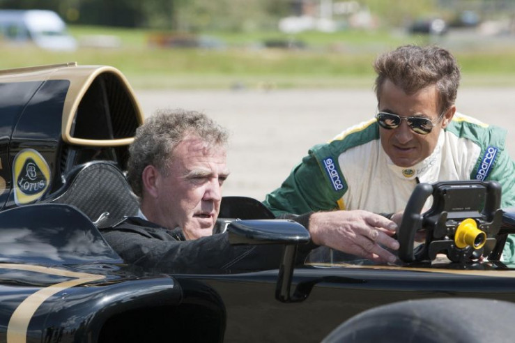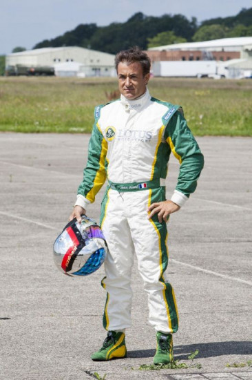 Formel 1-Profi Jean Alesi (r.) instruiert Jeremy Clarkson, wie der Lotus T125 zu fahren ist.