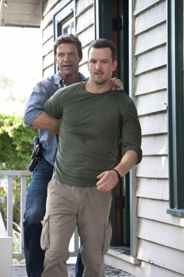 Jim (Matt Passmore, li.) knöpft sich Kyle Bertram (Josh Randall) vor, der mit dem Opfer vor dessen Tod gestritten hat. Doch ist er wirklich der Mörder?