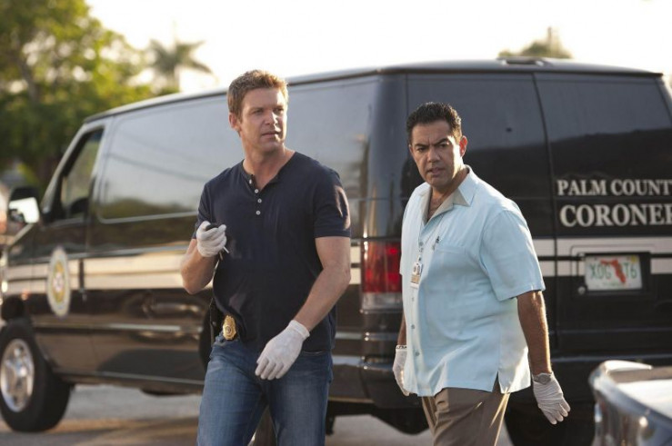 Jim (Matt Passmore) befragt den Chef des Getöteten, Dr. William Grant (Richard Grant, re.). Hat er am Ende etwas mit dem Tod Toussaints zu tun?