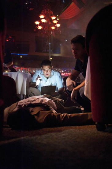 Carlos (Carlos Gomez) und Jim (Matt Passmore, li.) werden in ein Striplokal gerufen, um den Tot eines gewissen Dr. Toussaint aufzuklären.