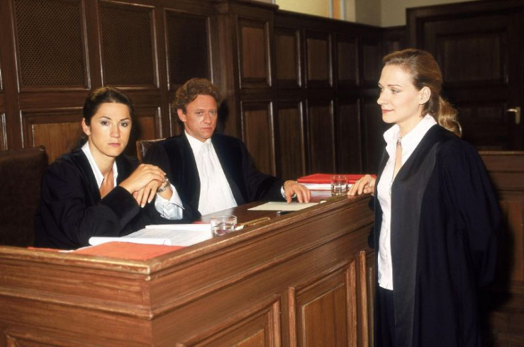Die Verteidigerin (Anika Mauer, re.) versucht die Staatsanwältin Lisa Sturm (Mariella Ahrens, li.) und den Oberstaatsanwalt Kampen (Axel Pape) davon zu überzeugen, dass die Indizien für eine Verurteilung ihres Mandanten nicht ausreichen.