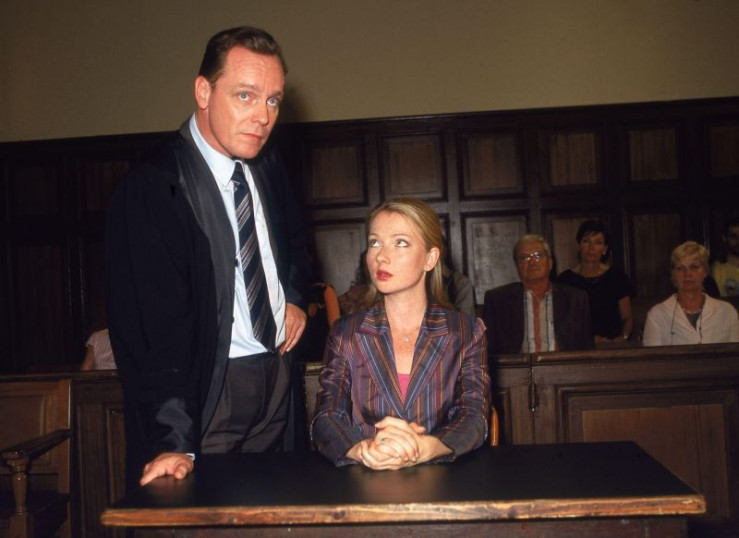 Nach der Aussage von Ellen Seifert (Katja Studt) versucht der Verteidiger (Karl-Heinz v. Liebezeit) das Gericht von der Unschuld seines Mandanten zu überzeugen.