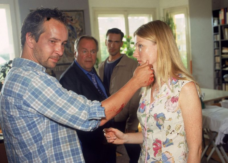 Nachdem sie zunächst behauptete, Gollwitz gar nicht zu kennen, gibt Ellen Seifert (Katja Studt) dann aber doch vor den Beamten Bonhoff (Wolfgang Krewe, li.) und Kehler (Wolfgang Krewe) zu, dass sie von dem Mordopfer erpresst wurde.
