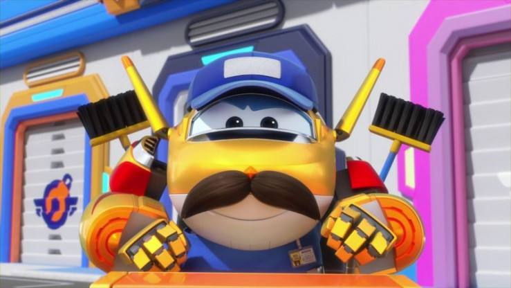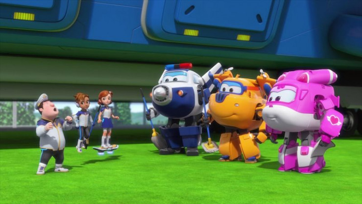 Die Super Wings werden zusammengetrommelt, um die Weltflugbasis am Weltflughafen gründlich zu putzen.