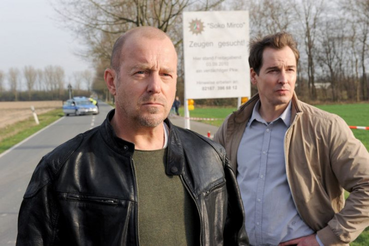 Ingo Thiel (Heino Ferch, li.) und Mario Eckartz (Felix Kramer, re.) suchen Zeugen, die etwas gesehen haben oder am Tatzeitpunkt an der Stelle waren, wo Mirco zum letzten Mal gesehen wurde.
