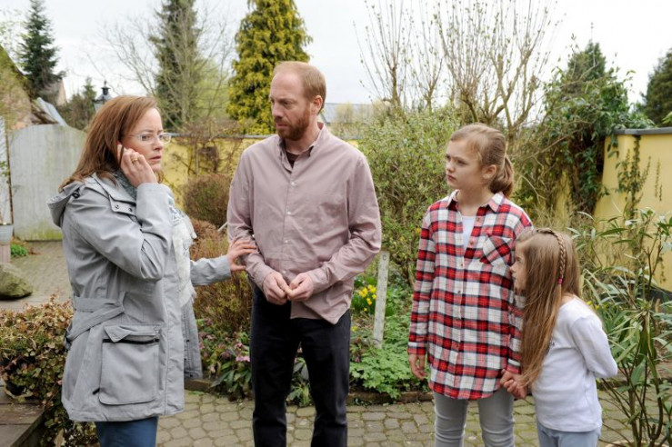 Weder Sandra (Silke Bodenbender, li.) und Reinhard Schlitter (Johann von Bülow, 2.v.l.) noch ihre Töchter Eva (Letizia Caldi, 2.v.r.) und Lisa (Lilith Serger, re.) können Mirco am Morgen im Haus finden.