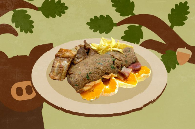 Das traditionelle Porco preto wird mit Migas gereicht ? trockenem, in Fett gebratenem Brot.