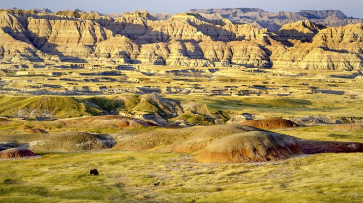 Ein einsamer Bisonbulle inmitten der gewaltigen Kulisse der Badlands.