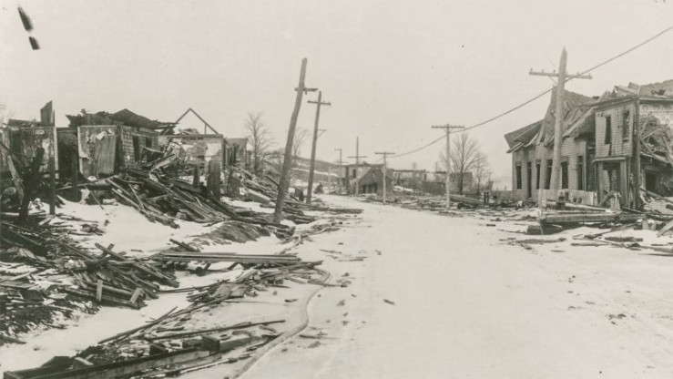 Am 6. Dezember 1917 ereignete sich im Hafen der kanadischen Stadt Halifax eine gewaltige Explosion. Sie kostete Tausende von Menschen das Leben und zerstörte einen ganzen Stadtteil. Die Katastrophe hat sich in das nationale Bewusstsein Kanadas gebrannt. Es war die bis dahin größte von Menschen verursachte Explosion. Und bis heute eines der tödlichsten Unglücke in der Geschichte des nordamerikanischen Kontinents. Bis zur Erfindung der Atombombe war die Katastrophe von Halifax die größte von Menschen verursachte Explosion. Als am Morgen des 6. Dezember 1917 im Hafen zwei Schiffe kollidierten, geriet die mit Munition und Sprengstoff beladene "Mont Blanc" in Brand. Nicht ahnend, in welcher Gefahr sie sich befanden, beobachteten die Einwohner des Hafenstadtteils Richmond das Feuer von ihren Fenstern aus. Als das Schiff um kurz nach 9.00 Uhr explodierte, waren sie den herumfliegenden Glasscherben und Trümmerteilen schutzlos ausgeliefert. Viele Menschen starben sofort, andere wurden unter den brennenden Trümmern begraben. Fast 2000 Menschen starben, etwa 9000 wurden teils schwer verletzt. Die Dokumentation lässt Überlebende und ihre Nachfahren von den Ereignissen berichten. Sie schildert die Rettungsarbeiten und zeigt, wie der Einsatz der Stadtverwaltung zum Vorbild für die Entwicklung von Notfallplänen wurde, die bis zu dieser Katastrophe nicht existierten. Des Weiteren beschäftigt sich der Film mit der bis heute nicht abgeschlossenen Auf- und Verarbeitung einer Katastrophe, die noch immer im Gedächtnis der Kanadier fortlebt.