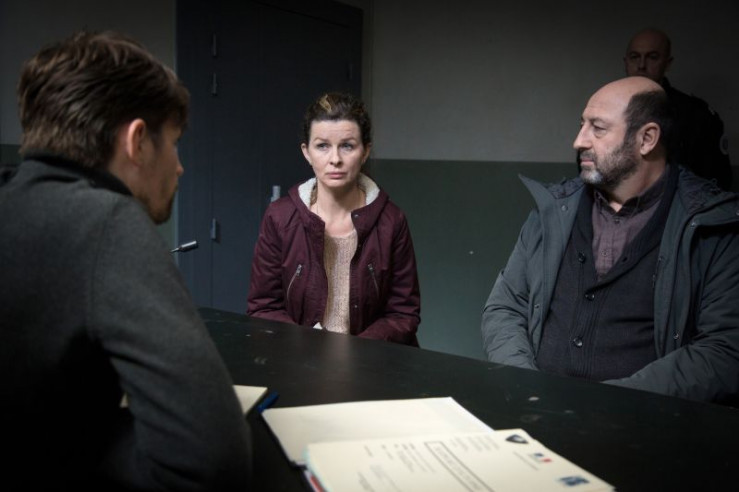 Die Kriminalbeamtin Sophie Lancelle (Géraldine Pailhas, r.) hört mit, was sich in dem Raum hinter ihr abspielt, in dem Thomas Kertez (Kad Merad, l.) und eine unbekannte Zeugin verhört werden.