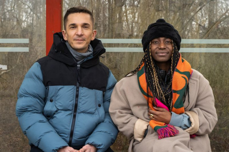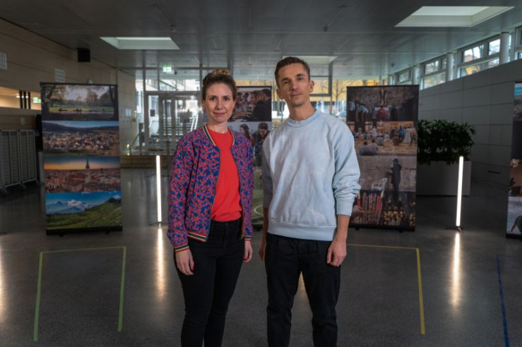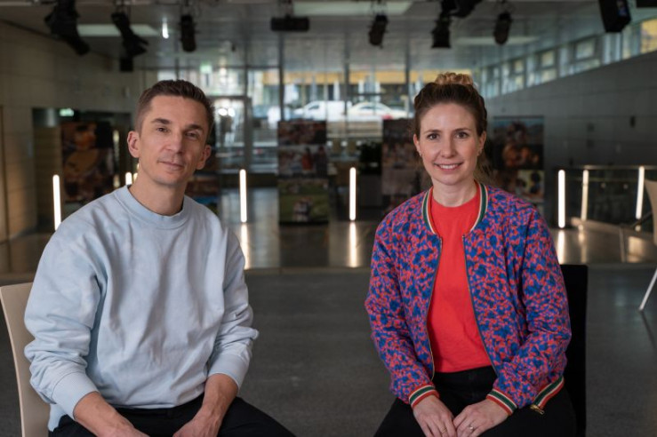 Protagonistin Christiana Bukalo (r.) und Moderator Eric Mayer (l.)
