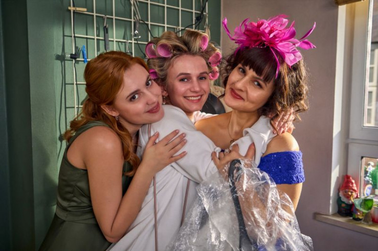 Caro (Meriel Hinsching, l.), Svenja (Leonie Wesselow, M.) und Jackie (Nagmeh Alaei, r.) freuen sich auf die bevorstehende Hochzeit von Svenja.