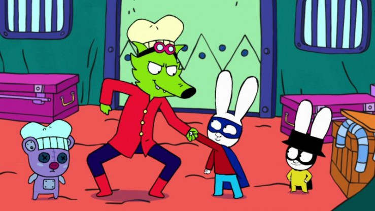 Professor Wolf erscheint und fängt die beiden Superhelden, um sie zu einer Suppe zu verarbeiten. Simon schlägt erneut einen Grimassen-Wettkampf vor: Wenn sie gewinnen, muss der Wolf sie freilassen. Schließlich gelingt es Captain Hase ihn zum Lachen zu bringen.