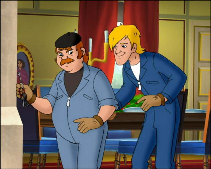 Graf von Falkenstein hat die Handwerker im Haus. Die zwielichtigen Gesellen haben es auf die wertvolle Hufeisen-Sammlung des Grafen abgesehen.