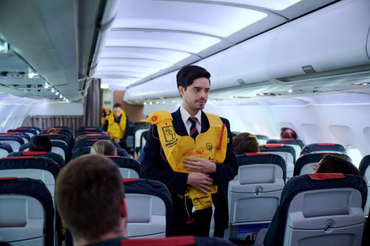 Flugbegleiter Danilo (Manuel Pacific) macht die Passagiere mit den Sicherheitsvorkehrungen vertraut.
