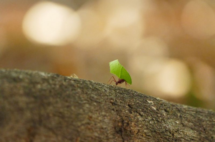 Anschließend tragen die Arbeiterinnen die Blätterschnipsel auf ihren Ameisenstraßen in Richtung Bau. Das Nest befindet sich im Untergrund. Weiteres Bildmaterial finden Sie unter www.br-foto.de.