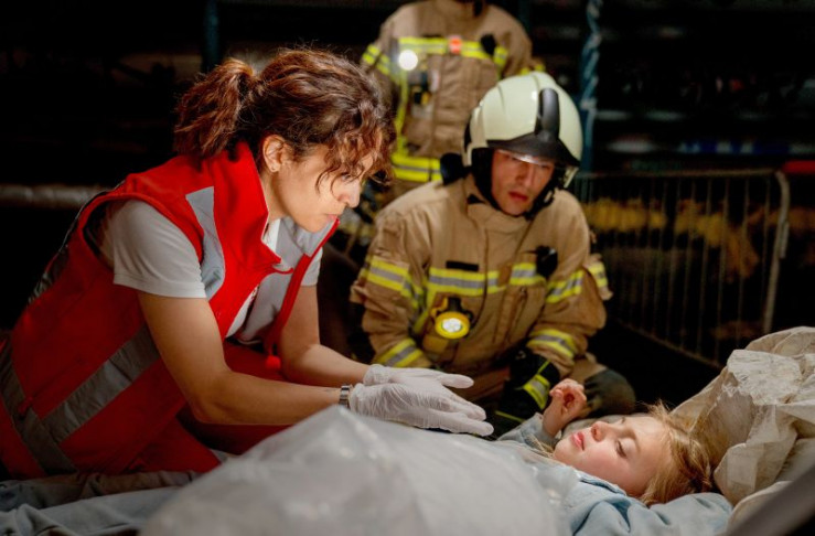 Markus (Max Hemmersdorfer) und seine Kollegen suchen die Kinder in dem verlassenen Gebäude.