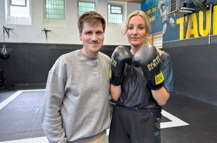 Downhill Skaterin Jenny Schauerte: Das Skaten hat ihr aus der Depression geholfen. Rechts: Moderator Frank Seibert.