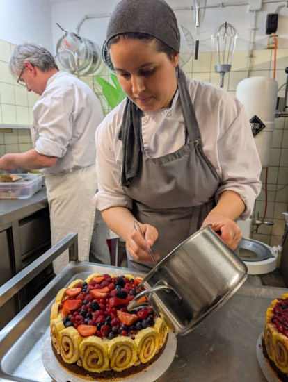 Auszubildende Tihane macht "Weßner Hof Torte".