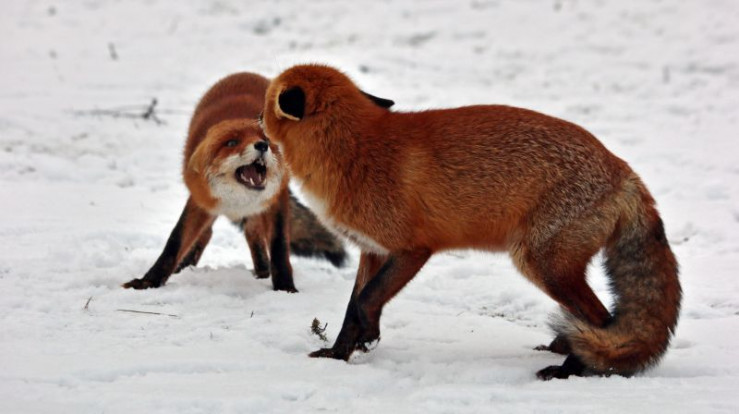 Zwei Füchse klären ihre Revieransprüche - zu ernsthaften Verletzungen kommt es dabei nur sehr selten.