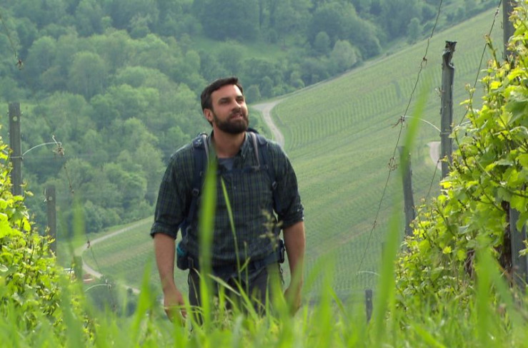 Steffen König wandert im Weinberg.