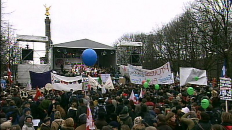 500.000 Menschen protestieren im Februar gegen den drohenden Irak-Krieg - die größte Friedensdemonstration in der Geschichte der Bundesrepublik. Fred Klinger von der katholischen Organisation "Pax Christi" reist aus Berlin in den Irak, um gemeinsam mit anderen Friedensaktivisten aus Europa als "menschliche Schutzschilde" die Bürger Baghdads zu schützen. Im Interview erzählt er von der Ankunft in der irakischen Hauptstadt, dem Leben im Krieg und der Freundschaft zu einem Jungen. Eine Geiselnahme hält die Stadt am 11.4.2003 in Atem: Ein Bankräuber kapert auf der Flucht einen Bus der Linie 185 und lässt ihn quer durch die Stadt fahren. Martin Textor, Chef der Spezialeinheiten der Berliner Polizei, erinnert sich an dramatische Stunden und die Entscheidung am Sachsendamm, als Elite-Polizisten den Bus stürmen und die Geiseln befreien.