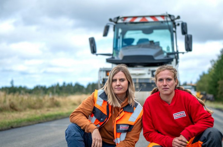 Reporterin Elisa Luzius (links) trifft Sally (rechts) aus Thüringen. Sie fährt in der Asphalt-Kolonne die große Walze.