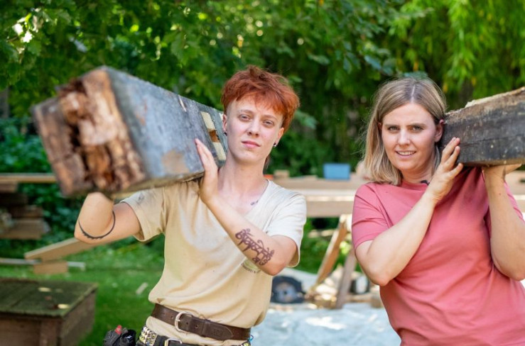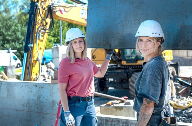 Vor der körperlichen Arbeit hat Frieda (links) am meisten Respekt. Doch wie sich herausstellt, wird Sexismus auf dem Bau ihre größte Herausforderung werden.