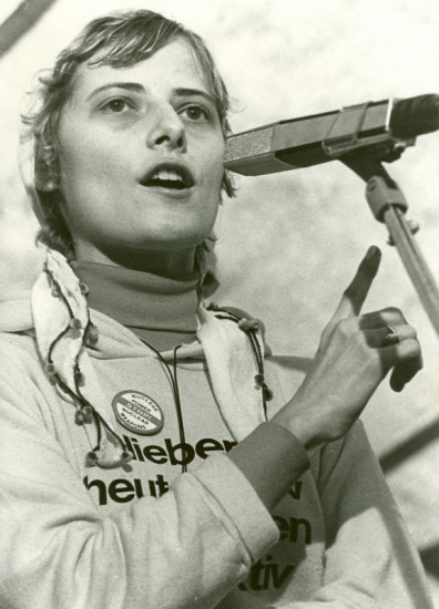 1983 zog sie für die Grünen in den Bundestag ein, wie keine andere verkörperte sie die Vision von einer atomar abgerüsteten Welt. Sie trat mit Joan Baez für den Frieden auf, unterstützte die DDR-Bürgerrechtsbewegung und konfrontierte Erich Honecker mit der Kampagne "Schwerter zu Pflugscharen".