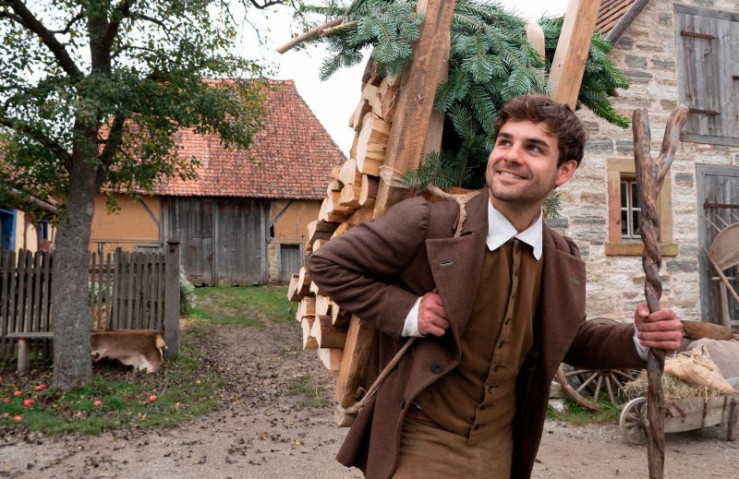 Sarah (Bianca Nawrath) trifft Hans (Lucas Reiber) mit dem fertigen Eisenbett.