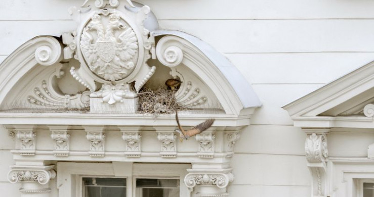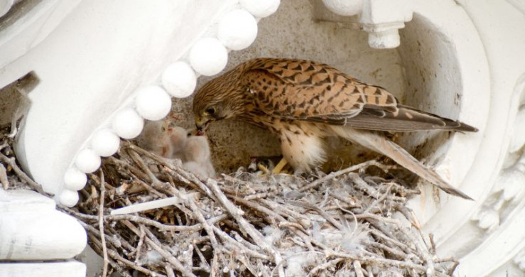 Turmfalke beim Füttern der Jungtiere.