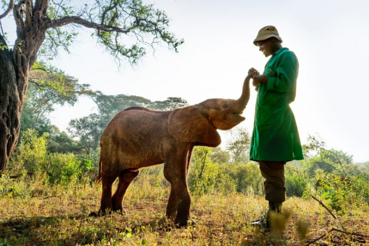 Die Pfleger der kleinen Elefantenwaisen sind rund um die Uhr an sieben Tagen in der Woche für ihre kleinen Patienten da, wie hier im "Sheldrick Wildlife Trust" in Nairobi/Kenia.
