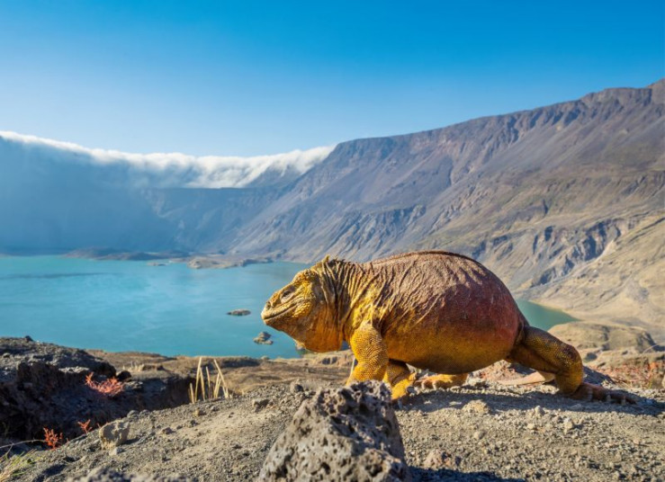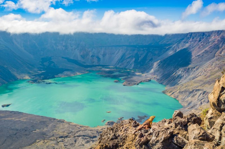 Unzählige Tierarten sind von den Feuerbergen abhängig. In Tansania schuf der "Ol Doinyo Lengai" den Natronsee, Nistplatz für Millionen Zwergflamingos. Auf den Galapagosinseln klettern weibliche Landleguane in den Krater des "La Cumbre", um dort ihre Eier abzulegen.