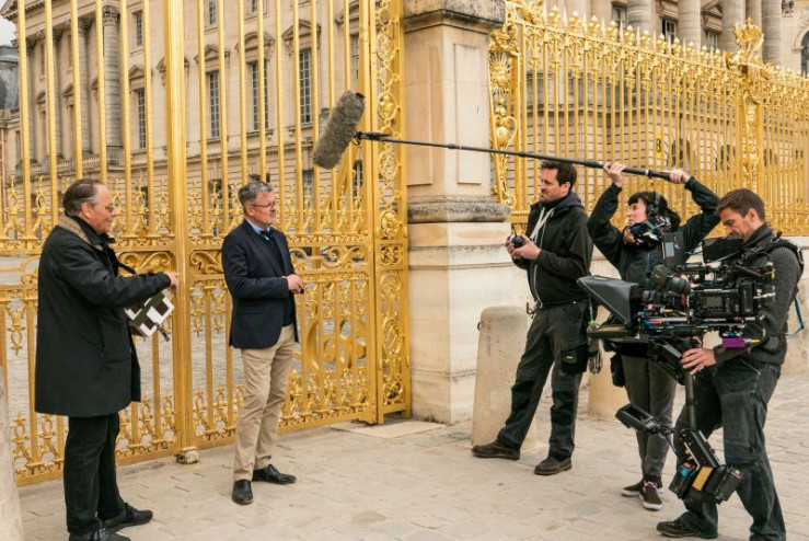 Regisseur Gero von Boehm, Moderator Christopher Clark und das Team beim Dreh in St. Petersburg.
