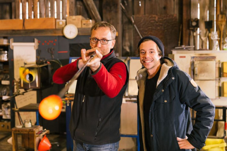 Nach lustigen aber erfolglosen Fehlversuchen gibt Stefan Tobi einen Tipp: In der Glasbläserei zeigt er ihm, wie man Glas herstellt - und welcher Aufwand nötig ist, um das heiße Glas abkühlen zu lassen, ohne dass es wegen der enormen Temperaturunterschiede bricht. Ob Tobi diese Spur nutzen kann, um das CheXperiment zu lösen?