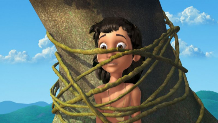 Die Affen haben Mogli an den Baum gefesselt, weil er sie davon abhalten wollte, Rangus Beeren zu fressen.