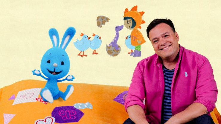 Christian erzählt Kikanichen die Geschichte von Vina und ihrem Brontosaurus, einem Langhalsdino. © KiKA/Studio.TV.Film GmbH - Honorarfreie Verwendung gemäß AGB im redaktionellen Zusammenhang mit genannter Sendung bei Nennung "Bild: KiKA/Studio.TV.Film GmbH" einschließlich Social Media Einschließlich Social Media© KiKA/Studio.TV.Film GmbH - Honorarfreie Verwendung gemäß AGB im redaktionellen Zusammenhang mit genannter Sendung bei Nennung "Bild: KiKA/Studio.TV.Film GmbH" einschließlich Social Media Einschließlich Social Media