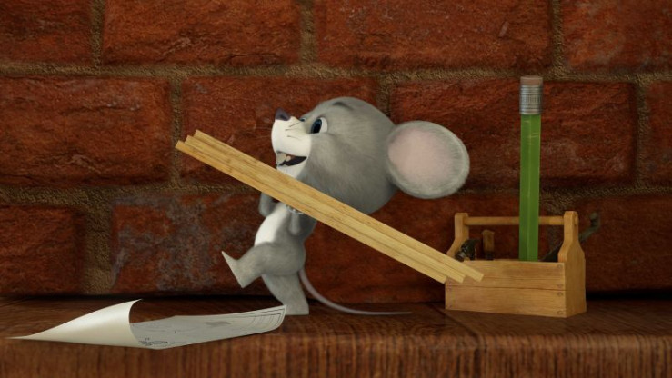 Mascha hilft der Maus und nimmt sich ein paar Dinge vom Essenstisch.