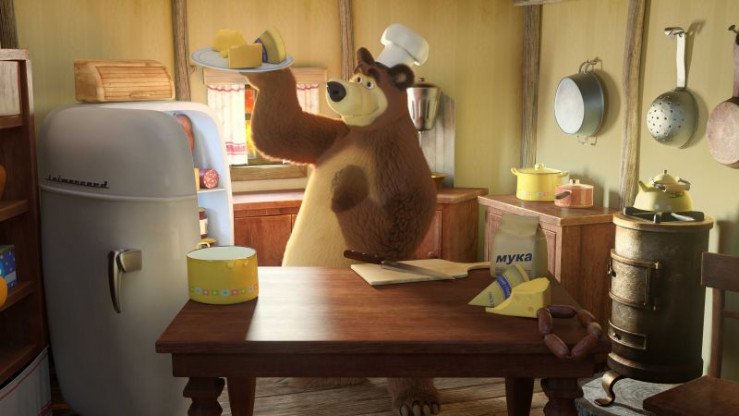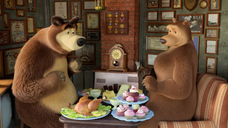 Bär kocht ein leckeres Abendessen für seine Angebetete. Die Maus wird vom köstlichen Geruch wach. Um herauszufinden, was da in der Küche passiert, muss sie erstmal die Uhr erklimmen und von oben schauen. Das Bärenpaar genießt bereits sein Mahl, als die Maus mit Hilfe einiger Tricks noch immer versucht, zur Uhr zu kommen. Da bemerkt Bärerschrocken einen großen Schatten an der Wand und warnt Mascha vor dem Ungeheuer.