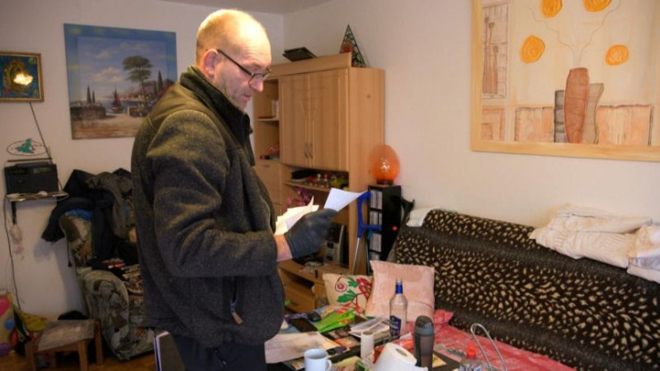 Nachlasspfleger Randolf Pietz sichtet das Wohnzimmer eines Verstorbenen.