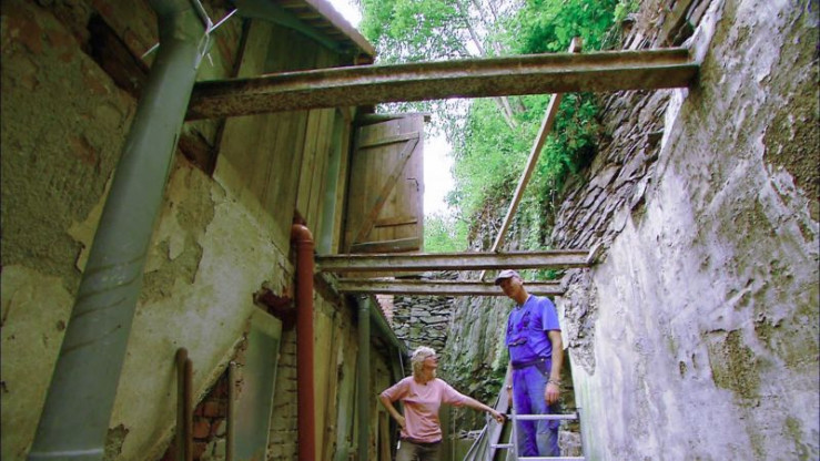 Holger und Claudia kaufen sich ein altes Haus, das ein Teil der ehemaligen Burg Gießenstein ist, für 1500 Euro. Jetzt muss erst mal genau geplant werden, wo was hin soll.