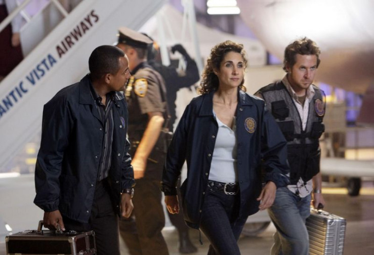 Ein Straftäter und ein Sky Marshal wurden mit derselben Waffe erschossen. Dr. Sheldon Hawkes (Hill Harper, li.), Detective Stella Bonasera (Melina Kanakaredes) und Adam Ross (A. J. Buckley) suchen fieberhaft den Täter. +++ Die Verwendung des sendungsbezogenen Materials ist nur mit dem Hinweis und Verlinkung auf RTL+ gestattet. +++